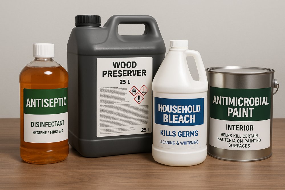 This includes disinfectants like Sodium Hypochlorite (bleach), antiseptics like Carbolic Acid (phenol), and preservatives like Sorbic Acid (used in cheese and wine). None are guaranteed to kill all the microbes, but they either kill most of them (leaving behind the more “harmless” ones), or prevent the microbes from growing.